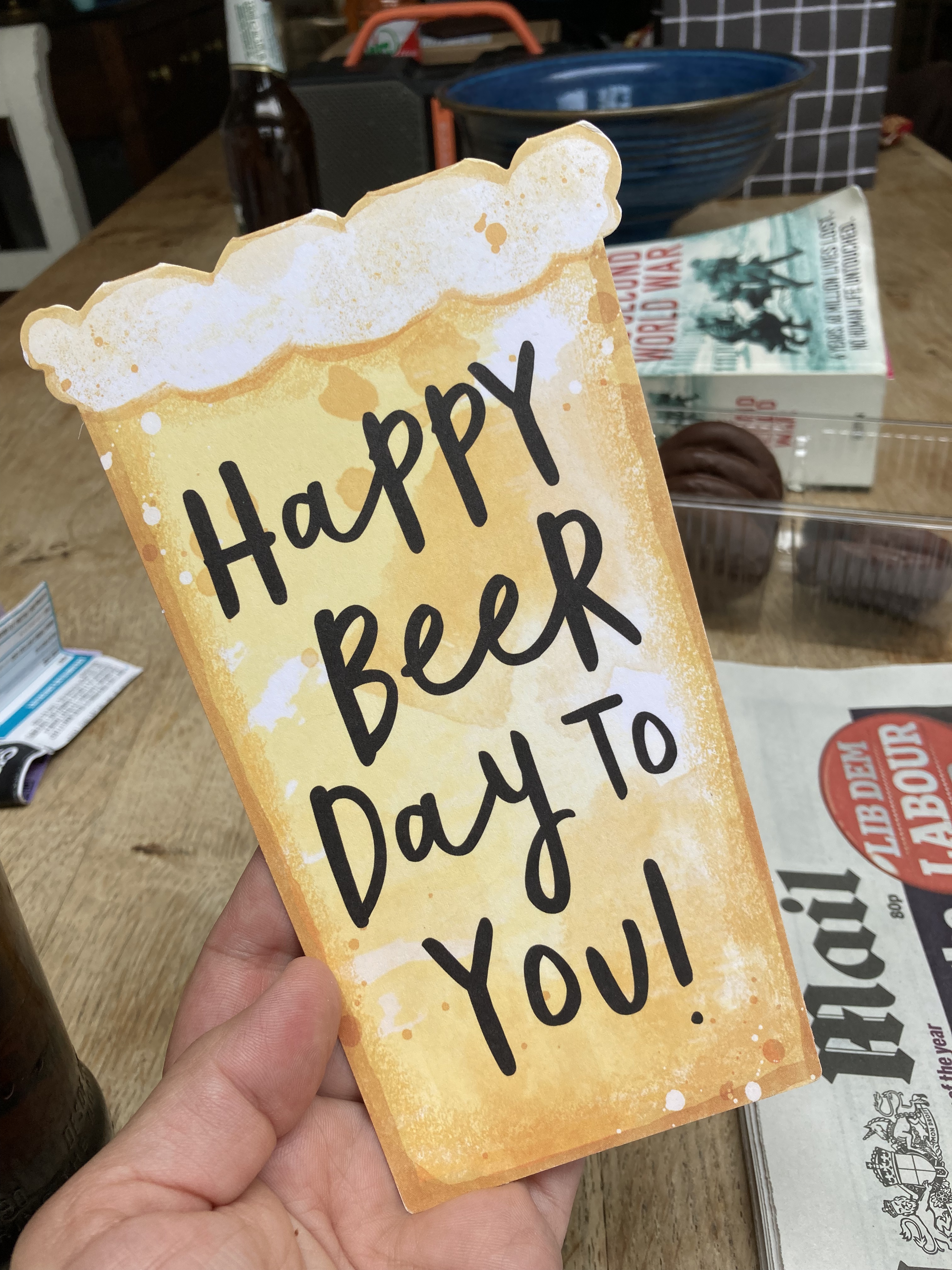 Anyway, I choose pie and chips for her, and the rest of us enjoy a beer with our meal. It’s not a heavy session, we’re all back at the house chilling out in the sunshine by 3pm and I ask Mum is she is going to join us at Wetherspoons in the evening.