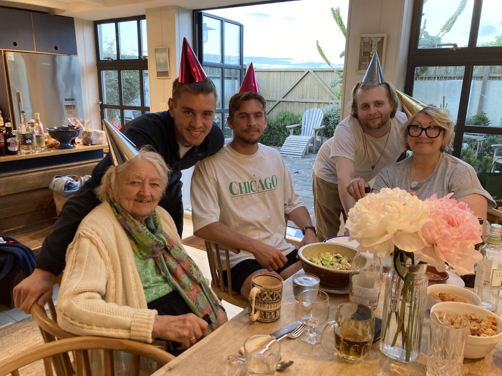 It’s my birthday tomorrow, and I’ve hired a lovely Air BNB down the coast from where I now live in Kent. I could only afford a couple of nights, but the boys have all booked time off work to come down and join me for a couple of days to celebrate. We’re not having a family holiday this year, Toby is venturing to Majorca with “the lads” and Alex and Oli have nothing planned. As it’s been a while since Mum last came down (it was November), I buy her a train ticket to come and stay for 4 nights, we’ll do a night where I live either side of the Air BNB and she’ll get to see three of her grandchildren at the same time.