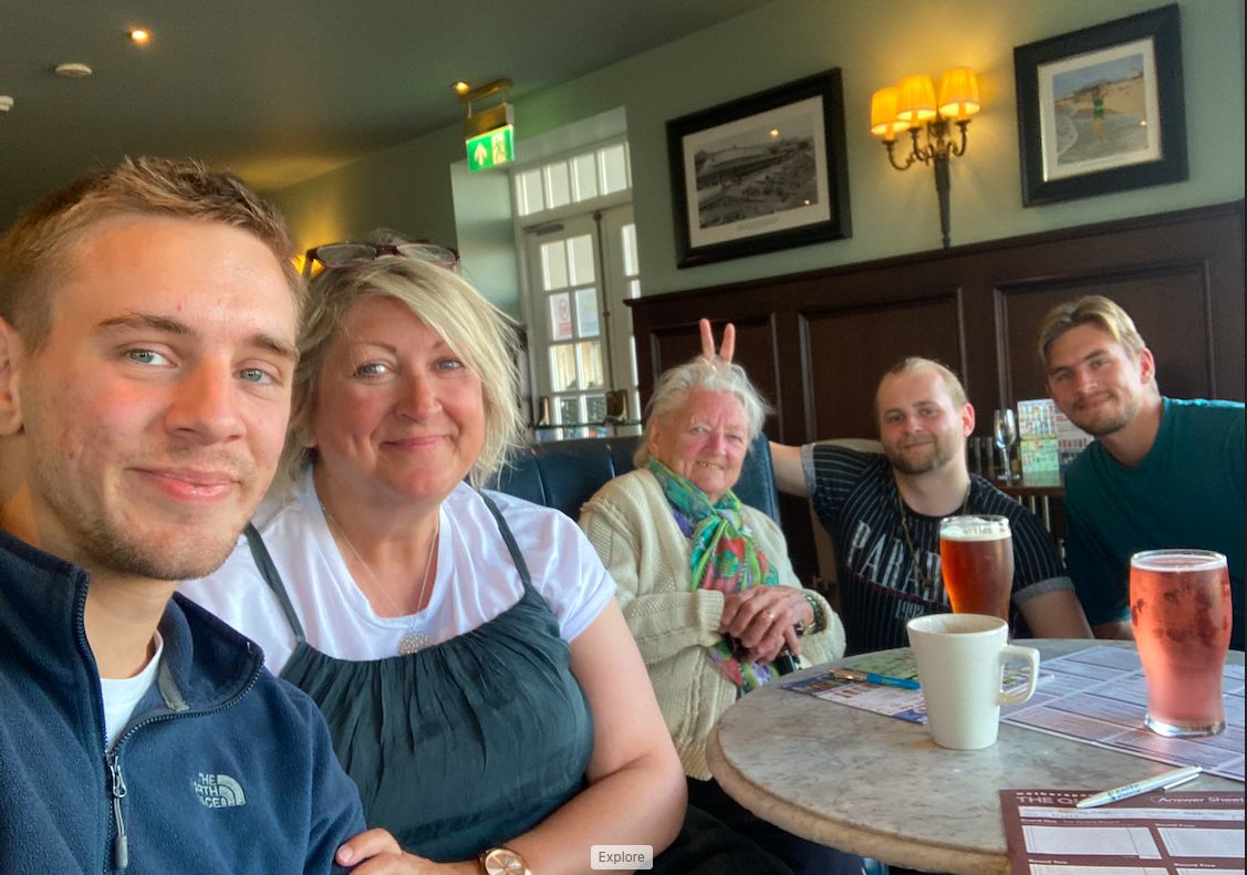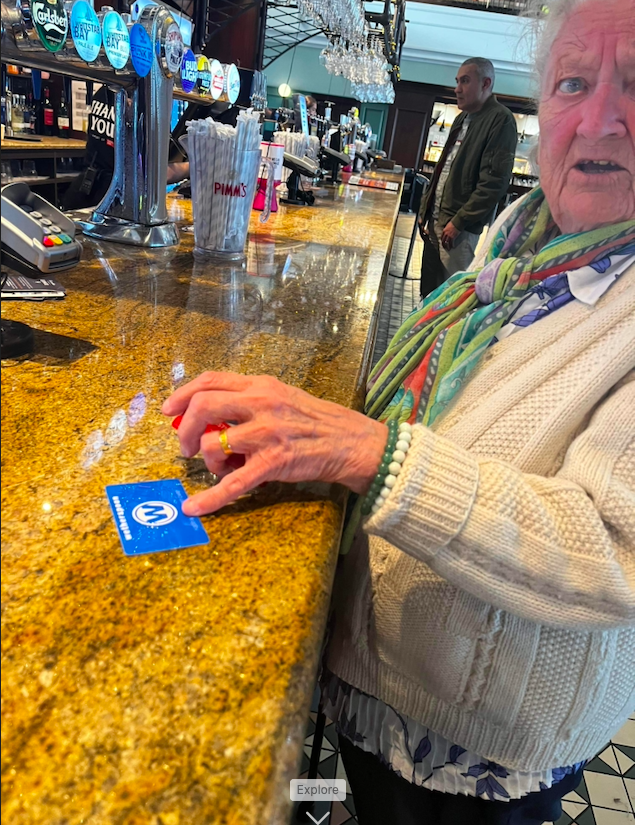 We find the boys and settle down. Mum would like a drink, and has fortunately remembered the reason why we first suggested Wetherspoons – the £10 gift card sent to her on her birthday. She goes to the bar with Toby and purchases her first pint with plastic. Of course, she is only going to have the one, she tells us when she returns. Nobody believes her for a minute, but we all nod approvingly. We record a little video to Trace, my lovely friend who sent her the gift card, thanking her and cheers’ing the pint and slowly, Mum regains her drinking pants.